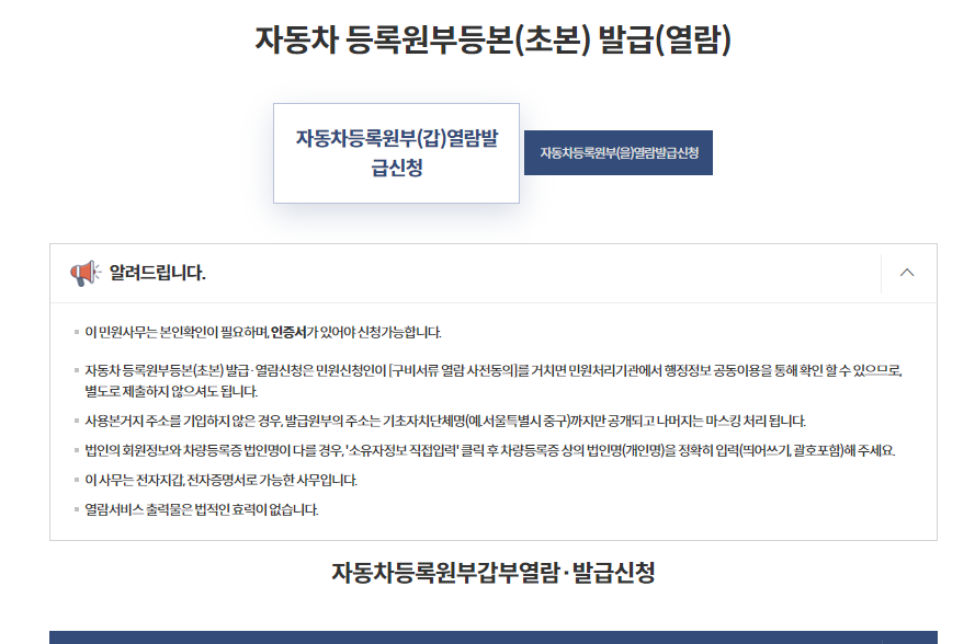 - 자동차등록원부(을)열람발급신청
