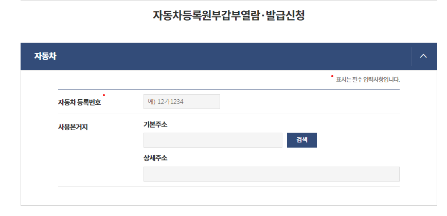 - 자동차등록원부(갑)열람발급신청
